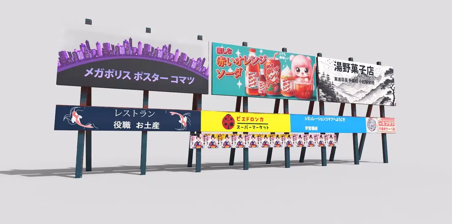 “Even though Komatsu is a small city, there are many outdoor adverts there. They often cover the facade of buildings. In Europe, we try to get rid of adverts in public spaces, but in Japan, it seems to be the opposite. Lightboxes and billboards can add a touch of charm to cities, but their presence in models comes with its own challenges”.